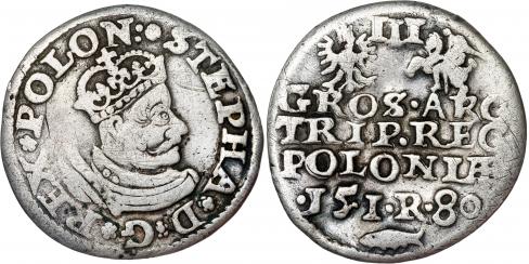Stefan Bathory Trojak (3 grosze) 1580 Olkusz